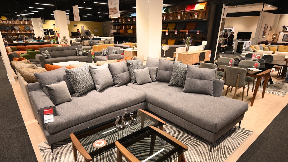 «Le concept de ce magasin repose sur un design épuré et minimaliste, mettant en avant les produits de manière optimale. Le parcours client bien défini à travers les différents univers d’ameublement pour la maison et les espaces professionnels permet une navigation agréable et intuitive. Le plafond noir encadre les ambiances chaleureuses, offrant une expérience cosy et douillette pour les visiteurs», explique Stéphane Joly.