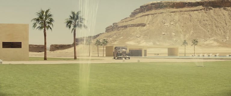 La maison, entourée en réalité d’une végétation luxuriante, est presque méconnaissable en comparaison à la manière dont elle apparaît dans le film, dans un endroit désertique créé grâce aux effets spéciaux.
