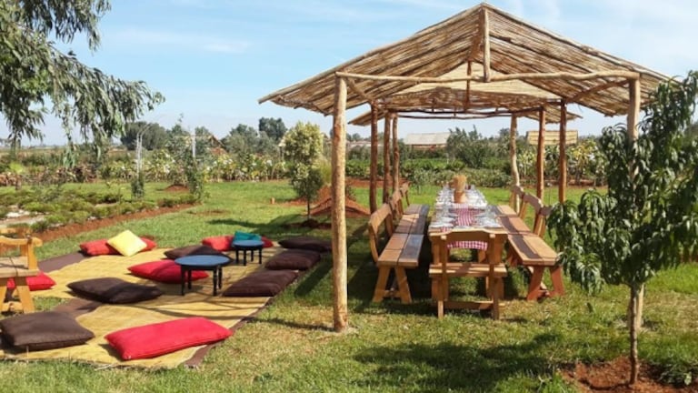 Ici on mange bio, au rythme de la terre en suivant le principe de la fourche à la fourchette. Si l’envie vous prend d’emmener un peu de cet endroit chez vous, des paniers bio sont en vente au prix de 120 dhs.