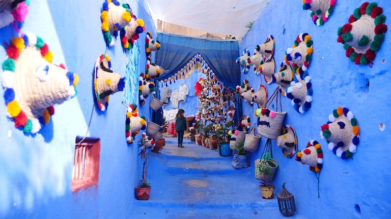 Faute de pouvoir découvrir la version originale de la ville, les visiteurs peuvent ainsi déambuler dans les ruelles de la médina reconnaissable à ses teintes bleues, poser devant ses emblématiques façades, ses escaliers ponctués de fleurs, ses fontaines et jusqu’aux enseignes écrites en arabe et en espagnol…. L’illusion est (presque) parfaite.