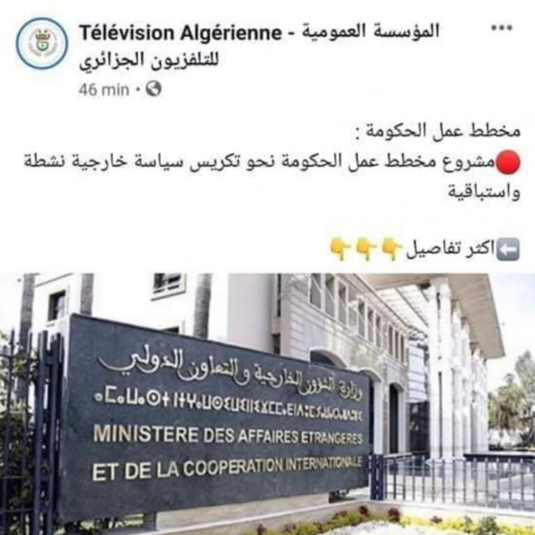 Il a donc fallu que cet acte de vol inqualifiable provoque une violente onde de choc sur les réseaux sociaux, pour que les préposés à l'administration du site de l'ENTV suppriment, in extremis, la photo du siège du département marocain des Affaires étrangères du papier dédié à la (nouvelle) politique étrangère algérienne "proactive et anticipative"!