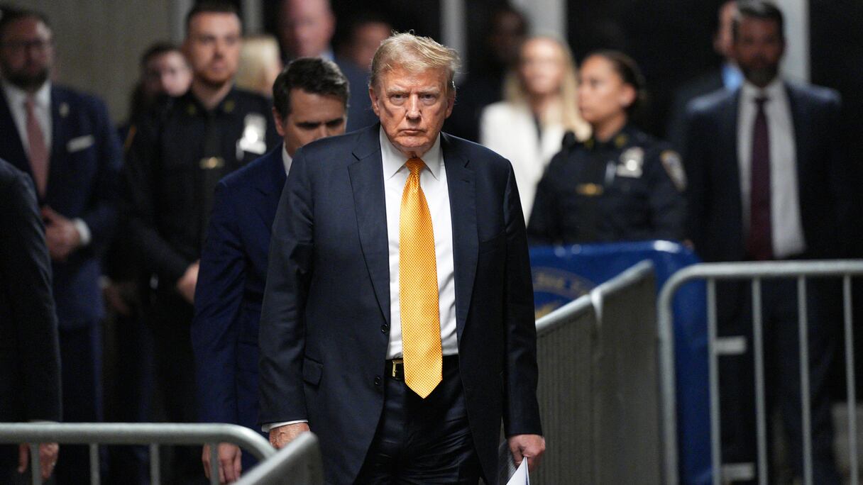 Arborant sa traditionnelle cravate rouge, il a évoqué pêle-mêle son procès au civil pour agression sexuelle et sa condamnation au pénal pour des paiements dissimulés à une actrice X lors de la campagne présidentielle de 2016. Il s’en est également pris à ses avocats.