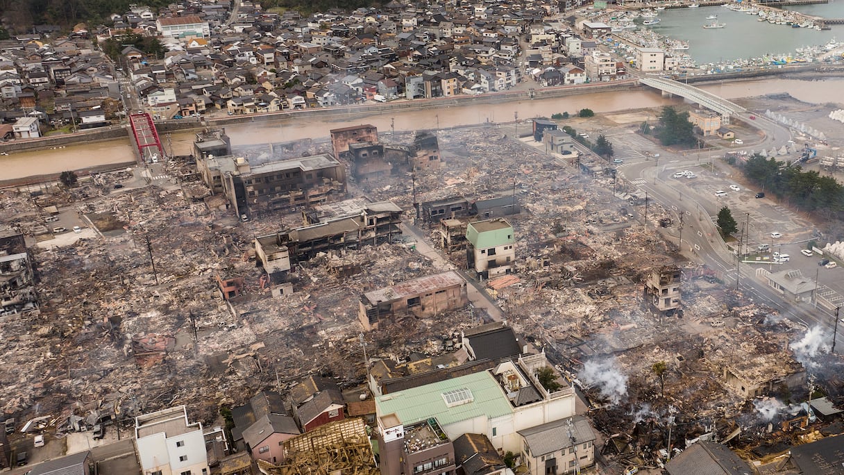 Un grand incendie a notamment ravagé une partie du centre-ville de Wajima, un petit port historique dans le nord de la péninsule de Noto, et un immeuble commercial de six étages s’est aussi effondré à cause du séisme.