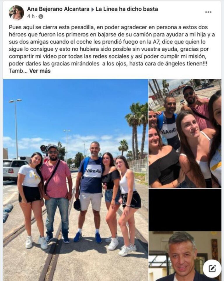 Deux jours après la publication d’un post sur les réseaux sociaux pour retrouver l’homme qui a sauvé sa fille et deux de ses amies de l’incendie de leur voiture sur l’autoroute A7 en Espagne, afin de lui exprimer toute sa gratitude, Ana Bejerano Alcantara a enfin pu retrouver celui qu’elle considère comme un héros.