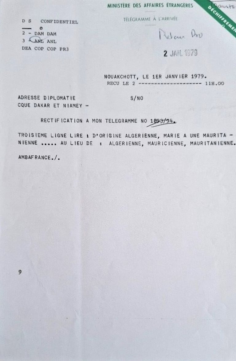 Le même télégramme va plus loin et rappelle aux autorités algériennes que plusieurs membres du gouvernement de la RASD étaient en réalité d’anciens ressortissants mauritaniens: