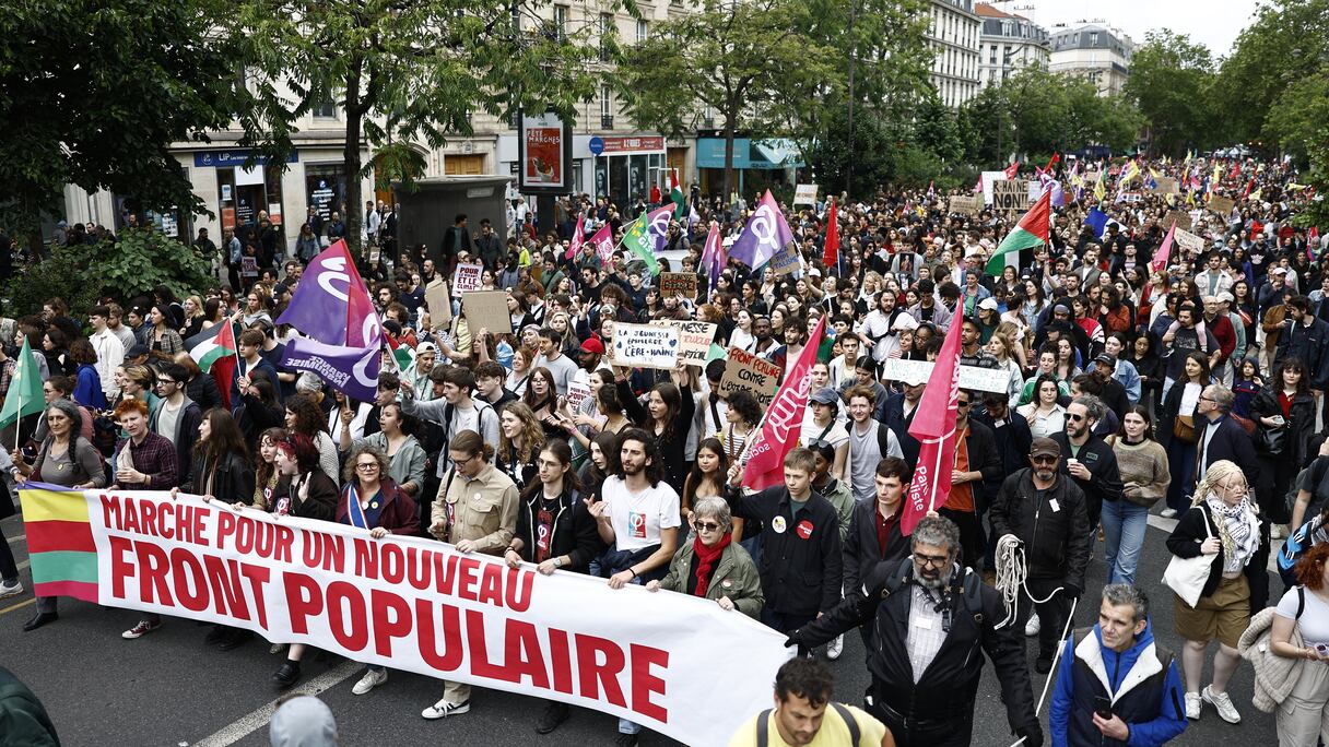 En deuxième position, avec 25% des intentions de vote, la gauche a réussi le tour de force de surmonter en quelques jours des mois de divisions sous la bannière du «Nouveau Front populaire». Ses leaders doivent tenir un premier rassemblement lundi soir à Montreuil, en banlieue parisienne.