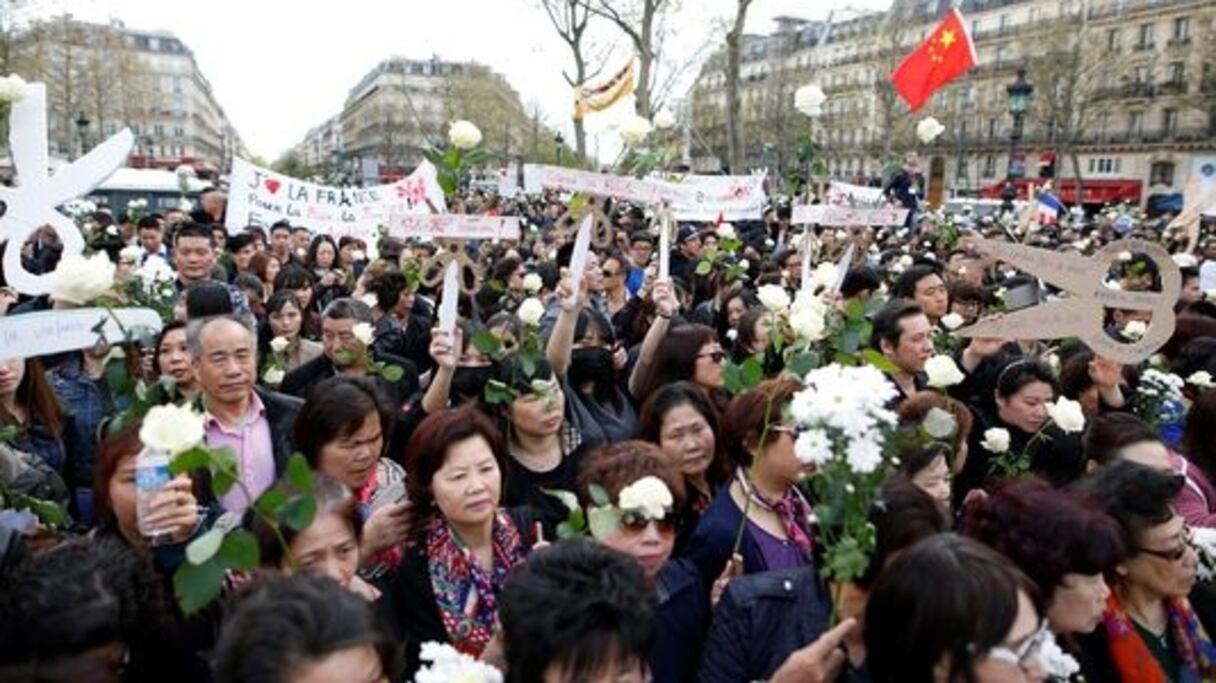 Au milieu de banderoles "Vérité justice, dignité" et d'affiches "J'aime la France", "Pour la paix, la justice!", "Contre la violence", les manifestants, une rose blanche à la main, se sont retrouvés sur la place de la République pour "un rassemblement de recueillement" à l'appel de plusieurs associations de la communauté chinoise.