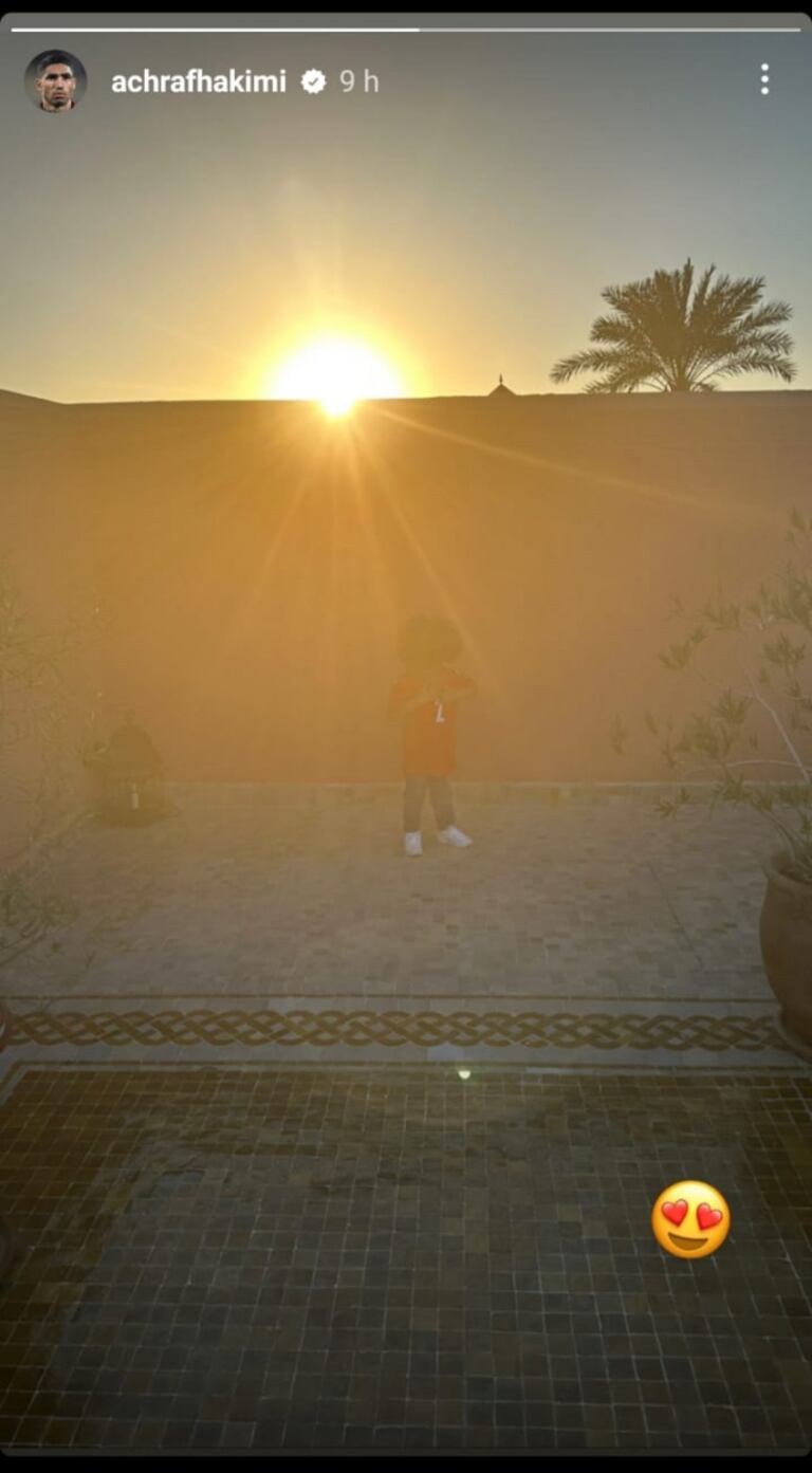 Si Achraf Hakimi n’apparaît pas sur les photos partagées par son épouse, celui-ci a laissé deviner sa présence à Marrakech en postant en story une photo de son fils au Maroc, fort probablement dans la ville ocre.