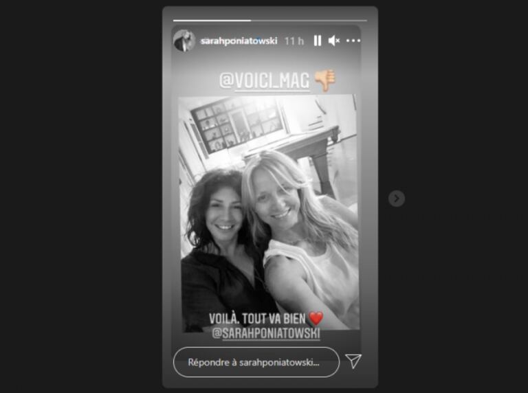 Or, il n’en est rien non plus. Sur son compte Instagram, la compagne de l’acteur a ainsi réagi aujourd'hui dans une story en partageant un selfie tout sourire dans lequel elle pose avec Albane Cleret, fondatrice de l'agence parisienne Albane Communication, en commentaire duquel elle écrit, «voilà tout va bien», après avoir tagué le magazine Voici avec un pouce orienté vers le bas.