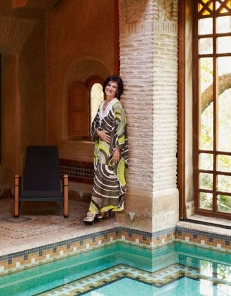 Paloma PicassoLa créatrice de mode et femme d'affaires franco-espagnole possède une très belle maison dans la palmeraie de Marrakech. Une somptueuse propriété, achetée en 2006 et construite en 1980 au milieu d'une ancienne plantation d'oliviers. "Je me sens parfaitement heureuse ici", a déclaré Paloma Picasso au magazine américain Harper's Bazaar.