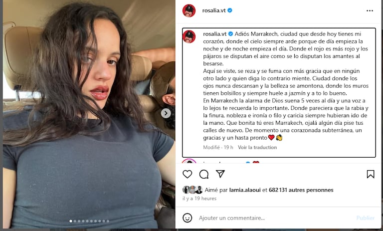 Lire aussi : Soleil, «duende» et sérénité: Rosalía partage son escapade à Marrakech