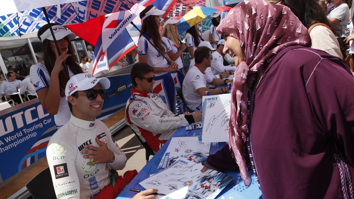 Mehdi Bennani a réalisé une belle performance, le week-end, au Marrakech Grand Prix. Souriant et détendu avant le début de la course WTCC, il a signé des autographes, pour le plus grand plaisir de cette dame sous le charme du pilote marocain.