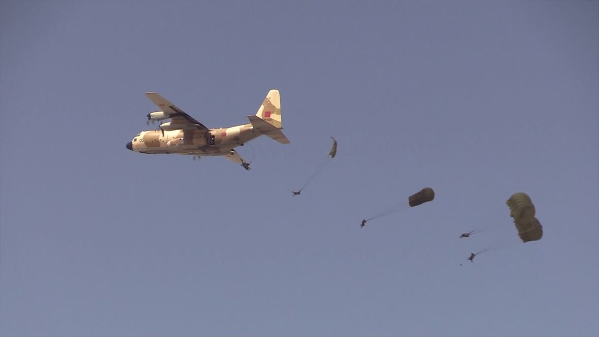Après l’aérolargage d’un lot d’équipements militaires qui a été conditionné par des cadres marocains et américains dans la base aérienne de Kénitra, des avions des Forces armées royales (FAR) et des Forces armées américaines ont procédé à une série d’opérations d’aérolargage de masse sur la zone de saut, avec l’exécution, une fois la mise à terre effectuée, d’une manœuvre au sol visant la réalisation de la mission confiée.