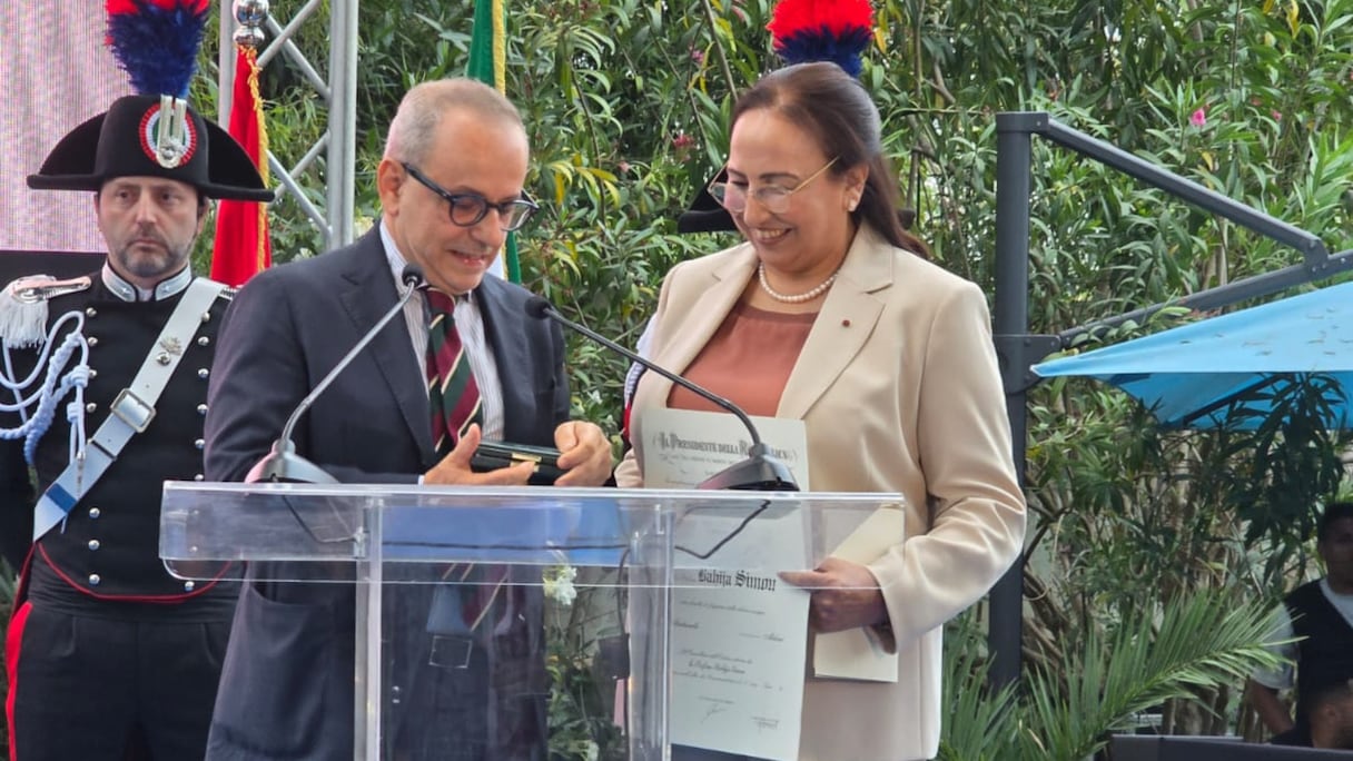 Lors d’une cérémonie organisée à Rabat, Armando Barucco, ambassadeur d’Italie au Maroc, a remis à Bahija Simou, directrice des archives royales du Maroc, les insignes de Commandeur de l’Ordre du Mérite de la République italienne, une des plus hautes distinctions civiles de ce pays.