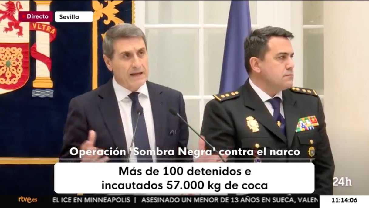 Selon la chaîne publique espagnole Canal 24 horas, le délégué du gouvernement en Andalousie, Pedro Fernández, a présenté cette opération, baptisée Sombra Negra, comme une action majeure contre le narcotrafic.