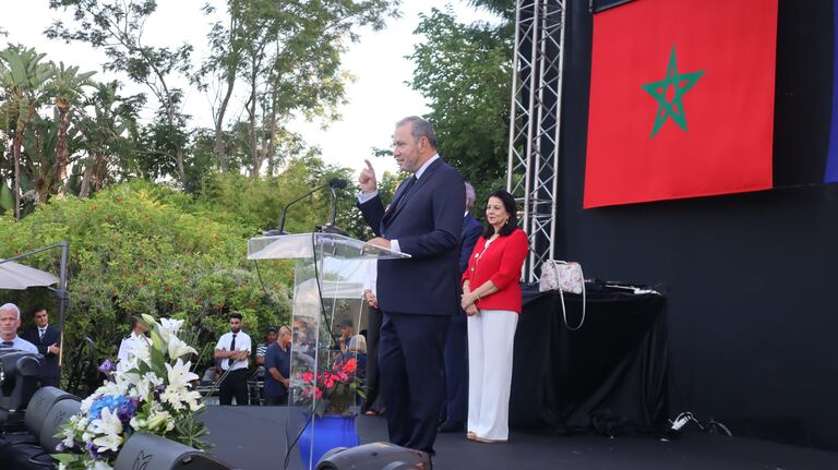 Le consul général à Rabat, Olivier Ramadour, lors de la réception organisée par l'ambassade de Paris à Rabat à la Résidence de France à l'occasion de la Fête nationale du 14 juillet.