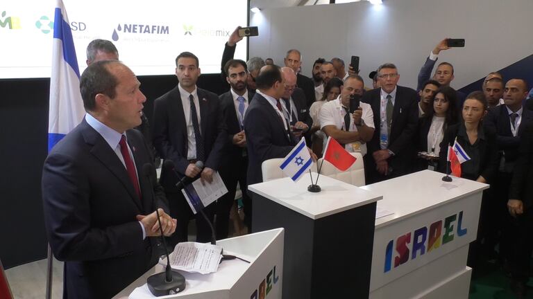 Le ministre de l’Economie et de l’Industrie, Nir Barkat, et les représentants de l’Israel Export Institute et du bureau de liaison de Tel-Aviv à Rabat, lors de l'inauguration du pavillon israélien au SIAM, le mercredi 3 mai 2023.