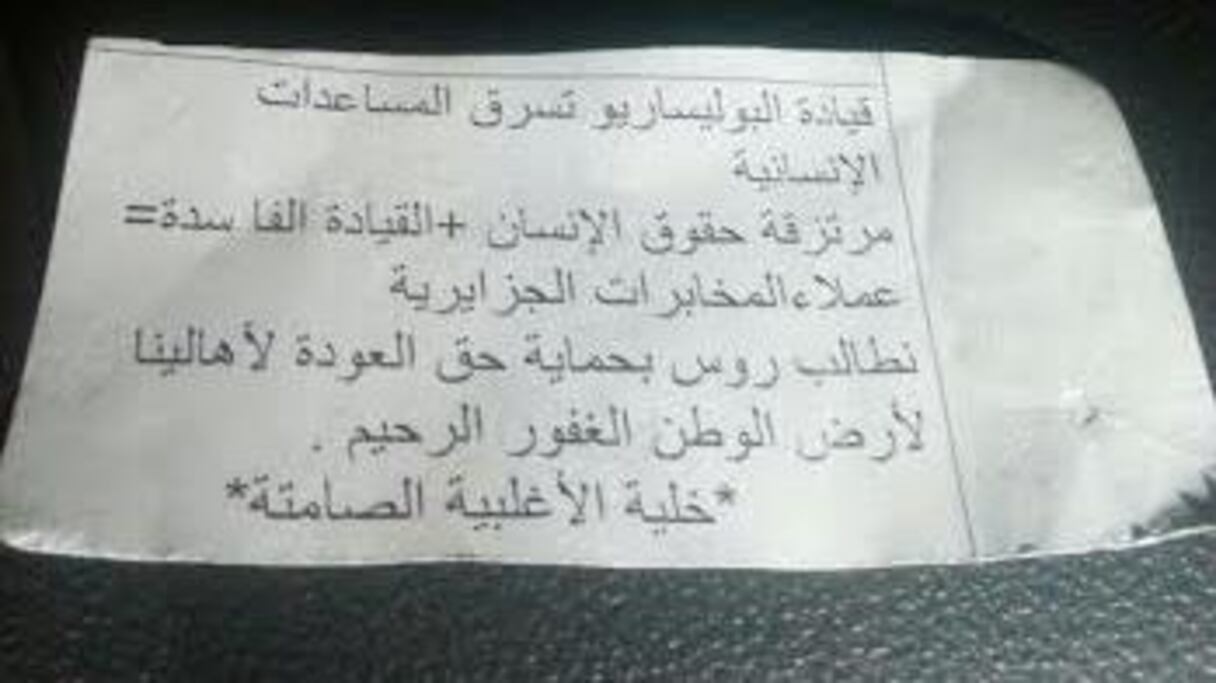 Seule indication dont disposeraient actuellement les services de sécurité, un tract signé «Majorité silencieuse» et dans lequel on peut lire ces messages hautement significatifs: «La direction du Polisario pille les aides humanitaires», «Mercenaires des Droits de l’Homme, dégagez!», «Une direction corrompue qui plus est à la solde des services de renseignement algériens» …