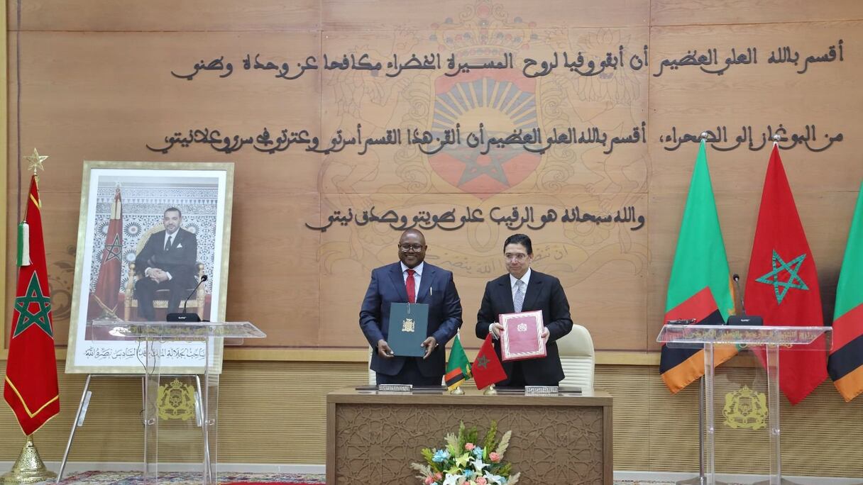 Cette position a été exprimée dans un communiqué conjoint signé à l’occasion de la tenue de la 1ère Session de la Commission mixte de Coopération entre le Royaume du Maroc et la République de Zambie, co-présidée par le ministre des Affaires étrangères, Nasser Bourita, et son homologue zambien.