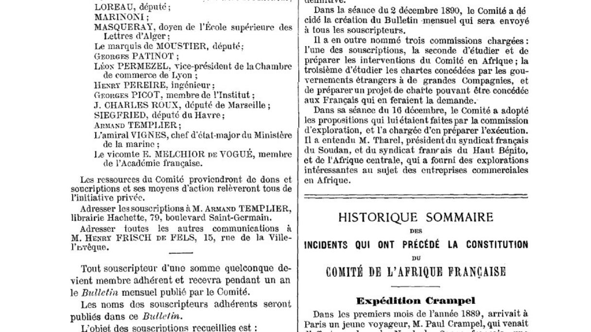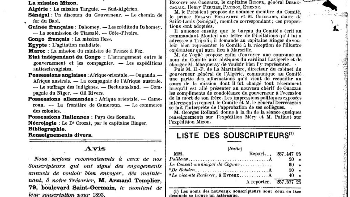 Page 10. Le ministre de France au Maroc, le comte d’Aubigny, est convoqué en «trois ou quatre entrevues à Fès» par le sultan Moulay Hassan. Ces audiences sont «à la fois politique et commerciale». La partie politique «avait trait, avant tout, à la question du Touât» et s’avère «négative» pour la France. Le comte d’Aubigny n’obtient aucune concession marocaine sur les «oasis du Sud oranais, et, à toutes les ouvertures qui pourraient être faites sur ce sujet». Des résultats qui, «s’ils n’ont pas été considérables, ce n’est pas sans doute aux talents de ce diplomate (comte d’Aubigny) qu’il faut s’en prendre, mais c’est bien plutôt qu’il était impossible peut-être que dans les conditions actuelles il en fût autrement». Et le BCAF de souligner que la France a suivi «trop longtemps une politique timide; elle avait presque honte de dominer d’Oran à El-Goléa», et «le maqhzen avait pris l’habitude de tenir nos réclamations pour peu de choses». Quant au volet des importations commerciales, la France obtient du Sultan «certaines réductions au tarif du 10 septembre 1844 (…) sur un grand nombre de marchandises telles que les tissus de soie, les pierreries, les galons et les vins (…) que les marques de fabrique françaises seraient protégés dans l’empire et que les fraudeurs seraient punis (…) enfin pour les droits d’exportation, les uns ont été réduits, tandis que la prohibition était levée pour d’autres objets qui ne pouvaient sortir du territoire marocain, comme les minerais et les écorces».