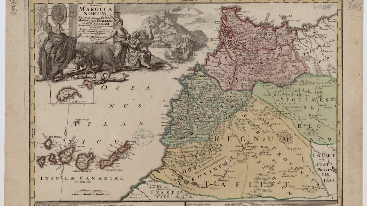Les cartes allemandes incluaient le Touat et In-Salah dans l'empire du Maroc. «Statuum Maroccanorum regnorum nempe Fessani, Maroccani, Tafiletani et Segelomessani», Homann, Johann Christoph, 1728, Collection d'Anville.
