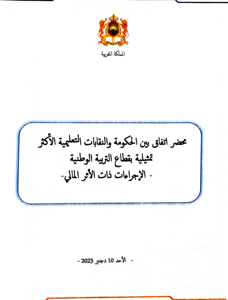 La cérémonie de signature de l’accord s’est déroulée ce dimanche 10 décembre, en milieu d’après-midi, en présence du chef du gouvernement, Aziz Akhannouch, et des représentants des quatre syndicats les plus représentatifs du corps des fonctionnaires de l’Éducation nationale.