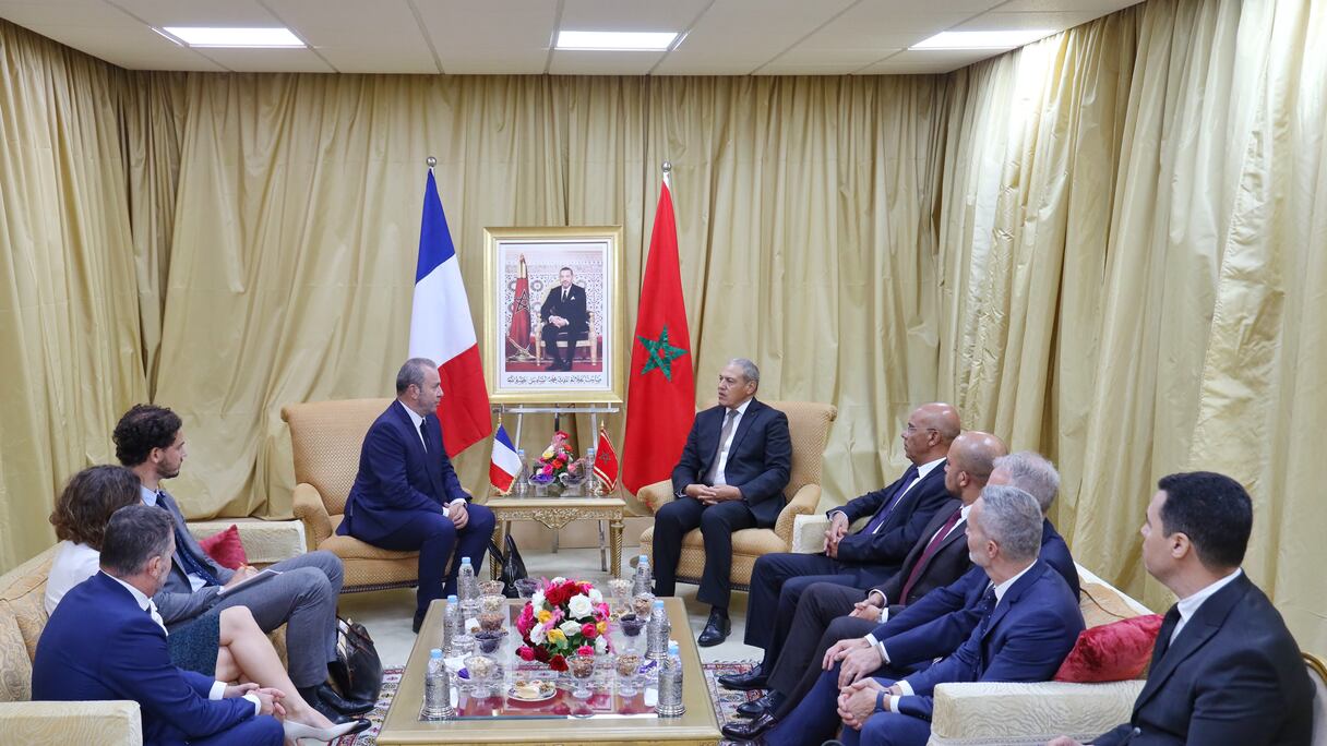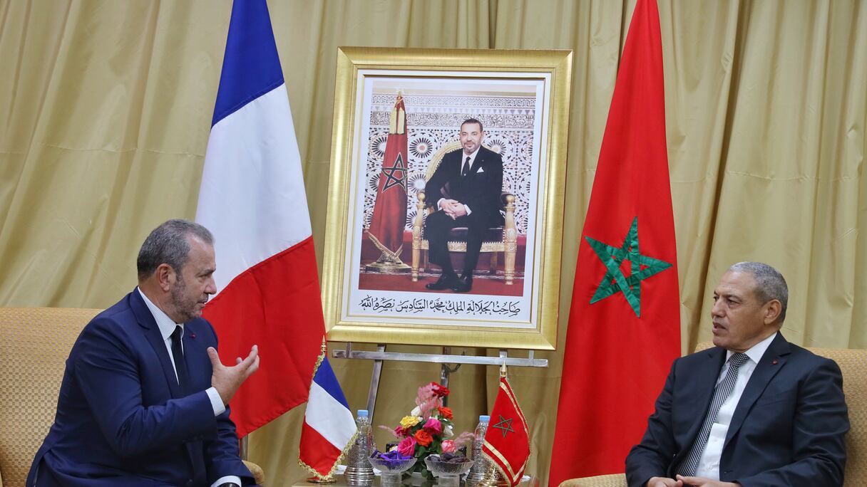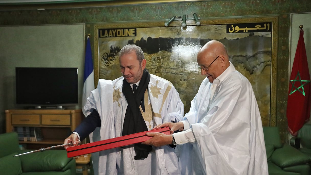 Le maire de Laâyoune, Hamdi Ould Errachid, accueillant l'ambassadeur de France au Maroc, Christophe Lecourtier, le 12 novembre 2024.