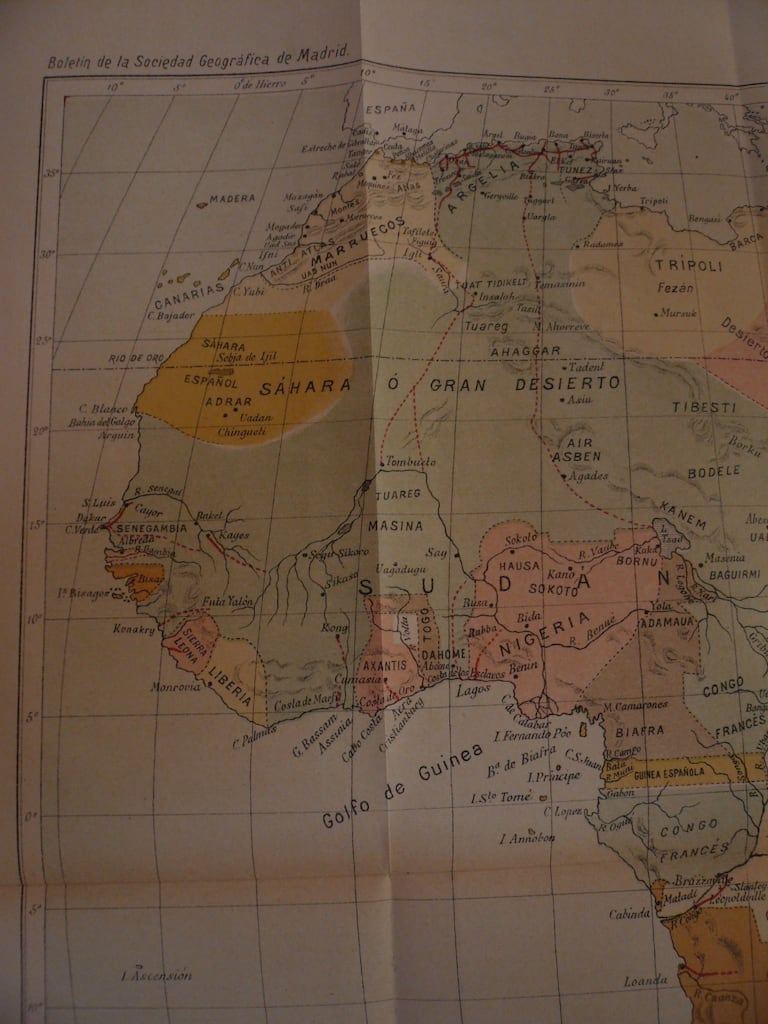 «Est-ce à dire que l’Algérie doive porter ses frontières vers l’ouest jusqu’au Rio de Oro et fermer ainsi au Maroc la route du Sud? Évidemment, non. Trop de questions politiques, économiques et aussi diplomatiques, je l’ai déjà dit, rendent le contact nécessaire entre l’A.O.F. et le Maroc.» Rapport A. Bonamy, 1924, ANOM. Aix-en-Provence, Gouvernement général de l’Algérie (G.G.A), Carton 8H40.