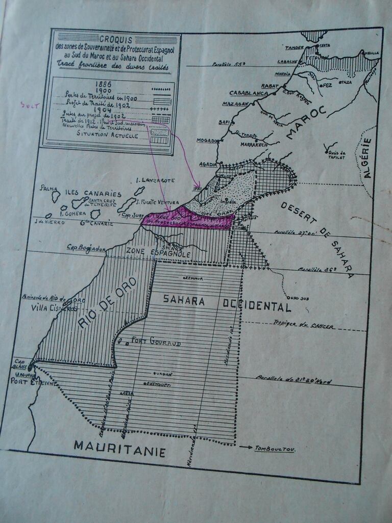 Vu le processus de la colonisation, et l’origine de l’appellation lancée depuis l’Algérie par les autorités coloniales françaises en 1880, ce territoire devrait englober au minimum le Sahara occidental et le Sahara oriental. Le problème du Sahara a été mal posé et l’ONU n’a fait qu’appliquer une appellation, spatialement réduite, à ce qu’elle appelle le «Sahara espagnol». L’erreur devient double puisque l’application du processus de la décolonisation du Sahara n’est pas une procédure légale. Le contexte des indépendances a rendu la voix du Maroc inaudible et consiste, stricto sensu, à récupérer les régions sahariennes concédées par Jules Cambon en 1900-1902 puis récupérées en partie par la France entre 1904 et 1912 comme le montre la carte espagnole et aussi la carte française. Le partage du Sahara dit espagnol en trois zones est le résultat du traité maroco-britannique de 1895 qui reconnait la marocanité du Sahara jusqu’à Boujdour.