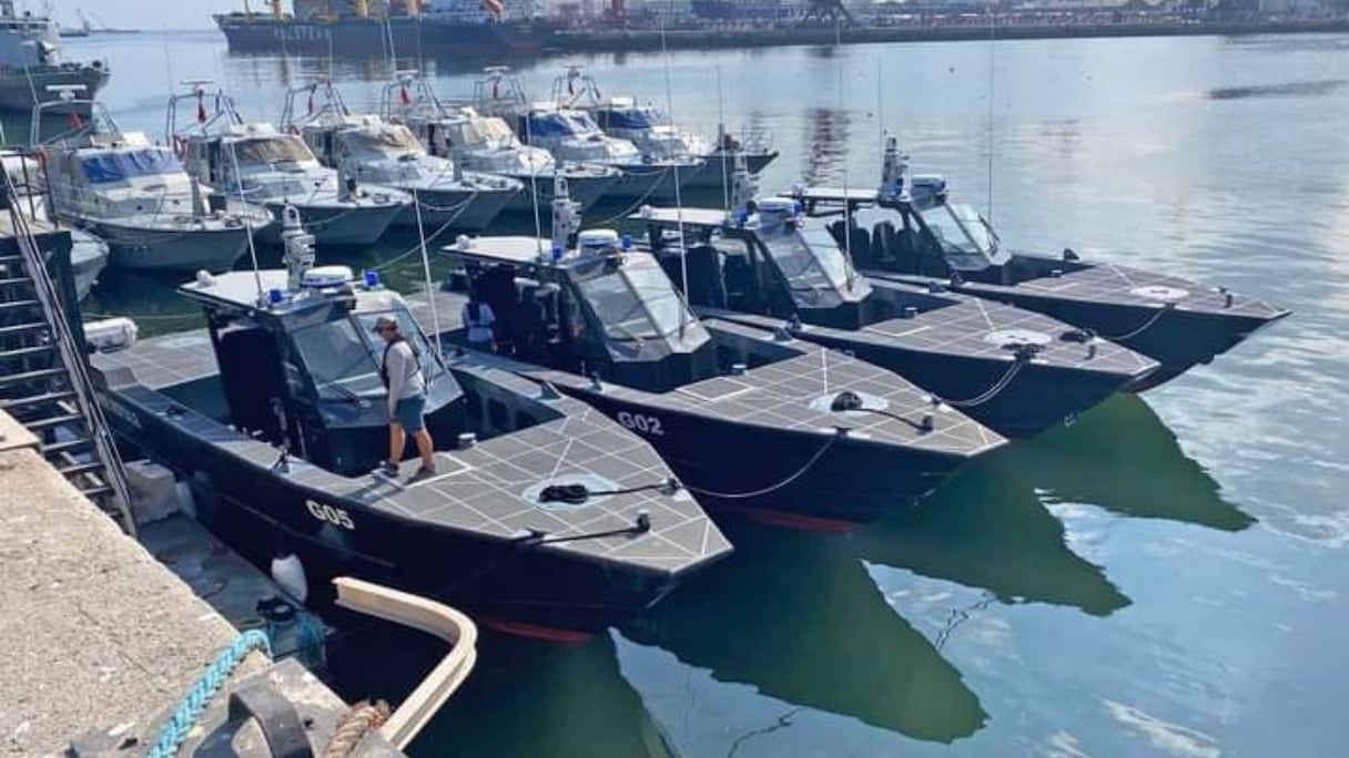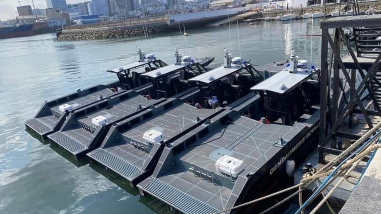 La flotte du Groupement maritime de la Gendarmerie royale s’enrichit avec de nouvelles acquisitions made in USA. Quatre nouveaux patrouilleurs haute performance 52 Fearless Super Interceptor, produits par l’américain Metal Shark, viennent ainsi garnir la flotte nationale, indique FAR-Maroc sur ses pages Facebook et X.