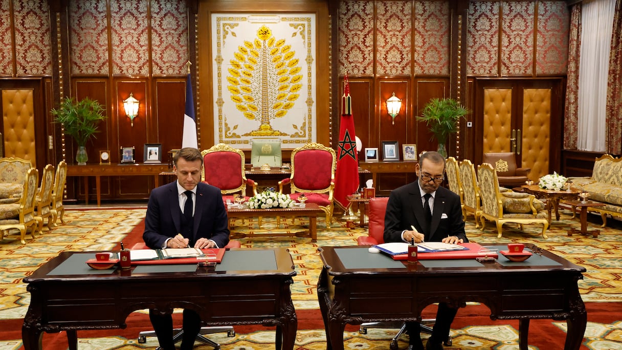 Le roi Mohammed VI, accompagné du prince héritier Moulay El Hassan, du prince Moulay Rachid, et des princesses Lalla Khadija et Lalla Meryem, et le président français, Emmanuel Macron, accompagné de son épouse Brigitte Macron, ont présidé, lundi soir au Palais des Hôtes Royaux à Rabat, la cérémonie de signature de plusieurs accords entre le Royaume du Maroc et la République française.