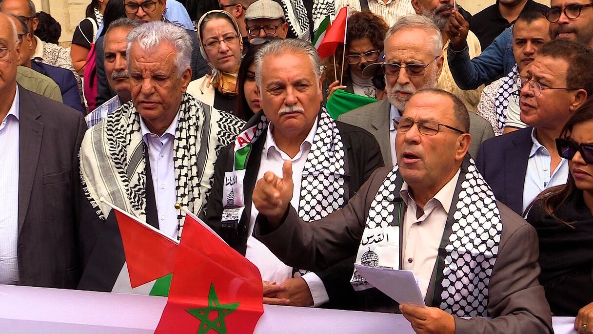 Ce sit-in, qui a réuni quelque 200 personnes devant l’ambassade de Palestine à Rabat, a été mené par des dirigeants du Parti du progrès et du socialisme (PPS, opposition), dont son secrétaire général Nabil Benabdallah, de l’Union socialiste des forces populaires (USFP, opposition), représentée par Abdellah Saibari, membre du bureau politique, et de l’Istiqlal (majorité) qui a dépêché pour cette occasion Abdelouahed El Fassi, fils du leader historique Allal El Fassi et ancien ministre de la Santé.