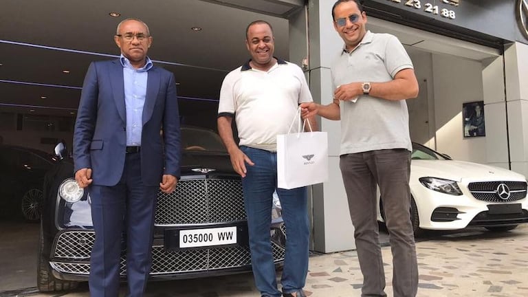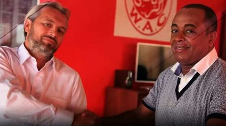 Le joueur béninois Badarou Nana Nafiou en compagnie de Said Naciri, président du WAC.