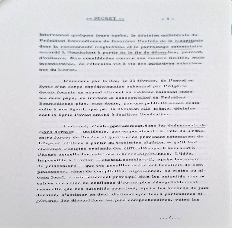 L’extrait fixe le cœur du problème: les événements de mars 1973 sont perçus comme un point de bascule dans les relations entre le Maroc et l’Algérie, nourri par des infiltrations venues d’Algérie.