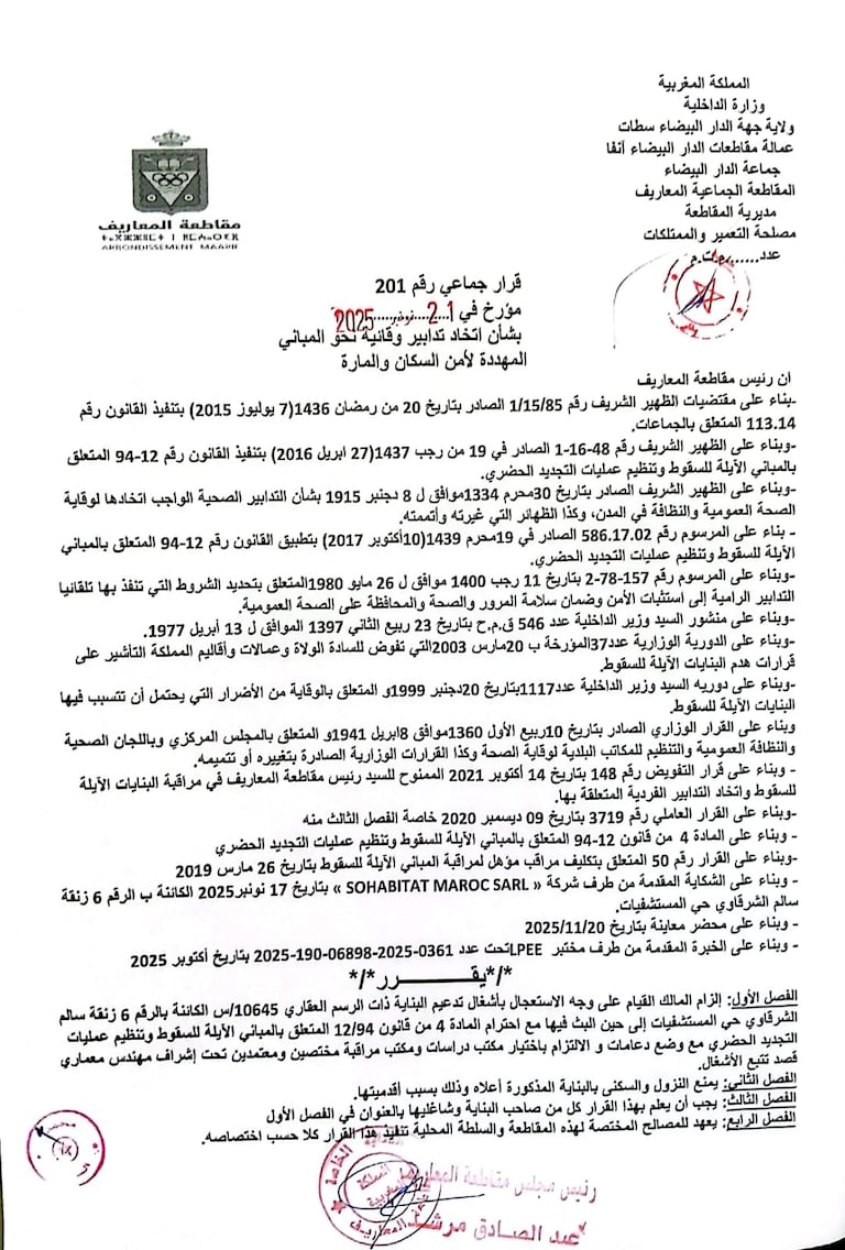 Le wali de la ville, Mohamed Mhidia, entend faire de ce dossier un cas exemplaire: sanctionner les responsables et signifier que le patrimoine de Casablanca ne peut être livré à la spéculation immobilière sous couvert de procédures détournées.