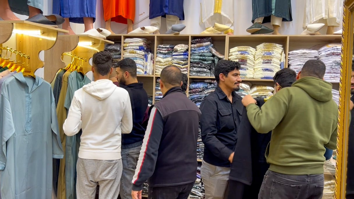Même constat chez Anas, également vendeur: «L’affluence est très bonne, surtout pendant les dix derniers jours du Ramadan. Cette année, la jellaba est particulièrement demandée, qu’elle soit cousue à la main ou à la machine, avec une grande variété de tissus et de styles. Aujourd’hui, porter une jellaba implique aussi de compléter la tenue.»
