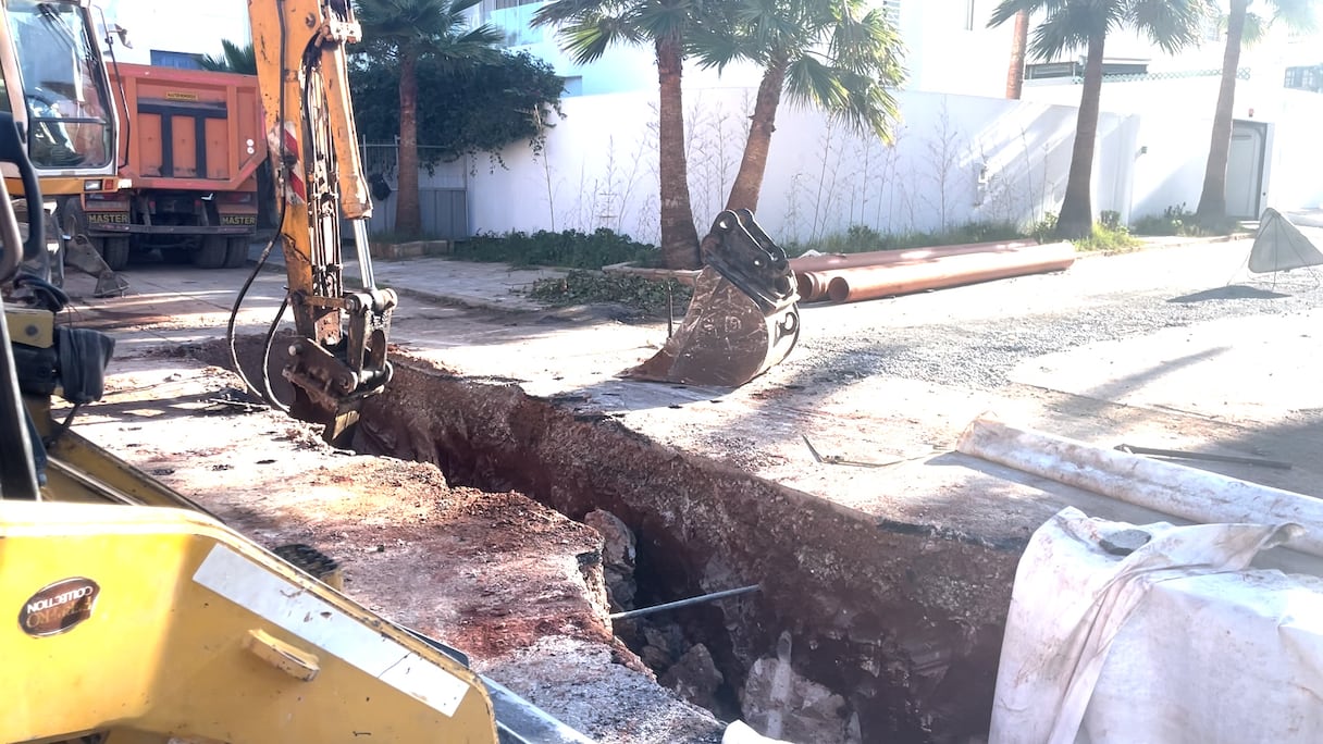 Vue du chantier de réalisation du réseau d'assainissement à Harhoura (Y.Mannan/Le360).