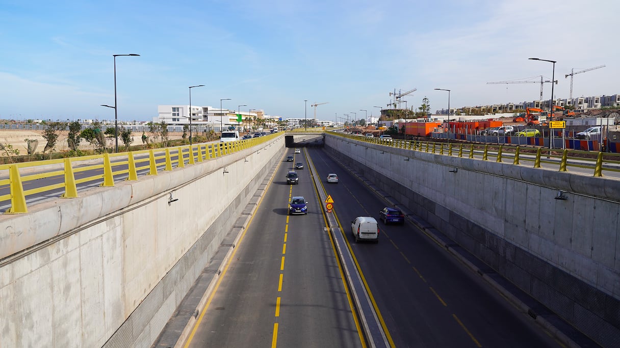 En plus de l’élargissement de cette route de deux à trois voies, ce projet porte sur la construction de quatre tunnels. Le premier, long de 100 mètres, se trouve à l’intersection de la route d’Azemmour et de la rocade sud-ouest.