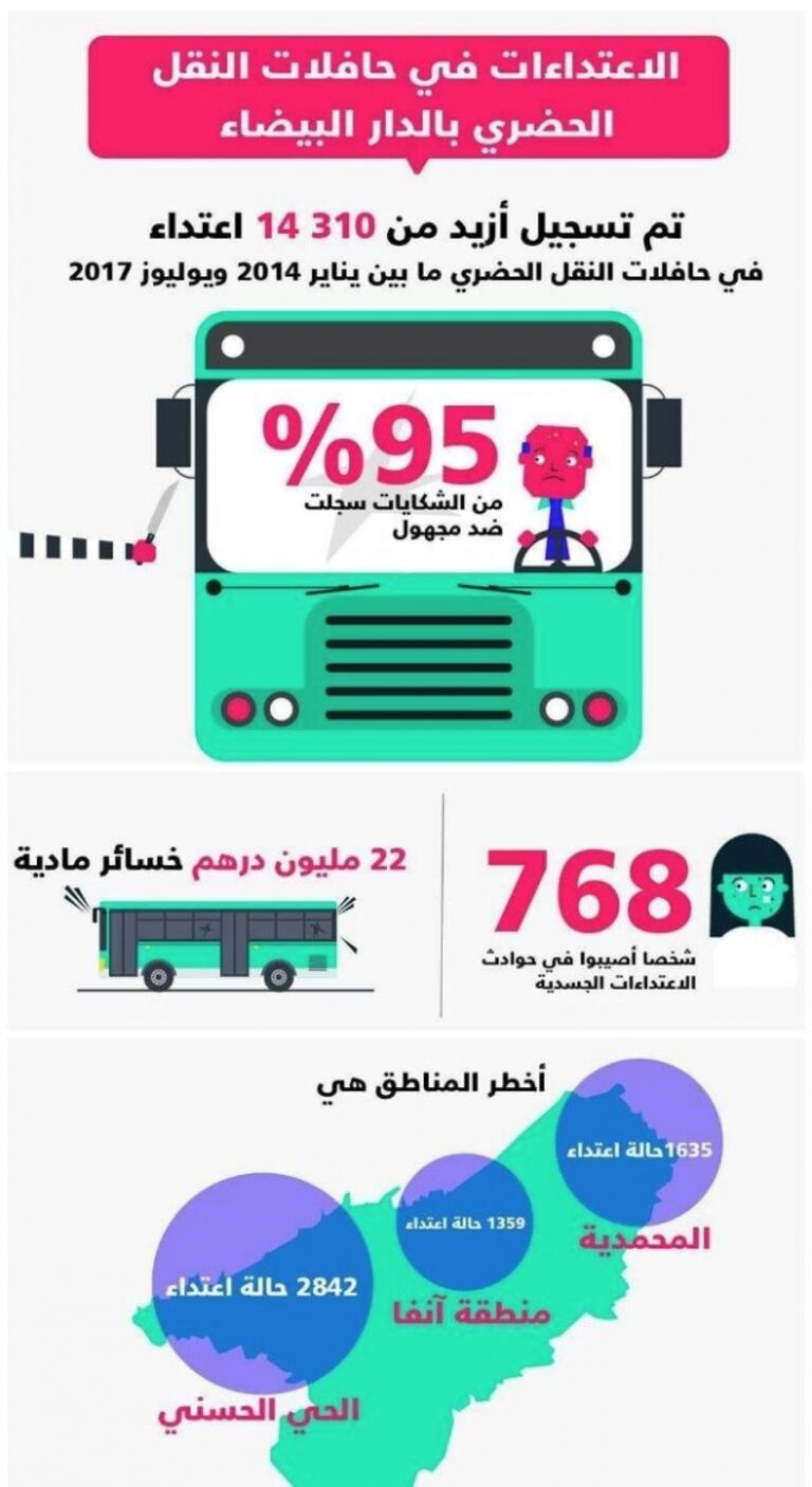 Le transporteur dresse une carte des zones les plus dangereuses. Ainsi, sur la ville de Mohammédia, il est enregistré 1.635 cas d’agressions à bord des bus de la compagnie.