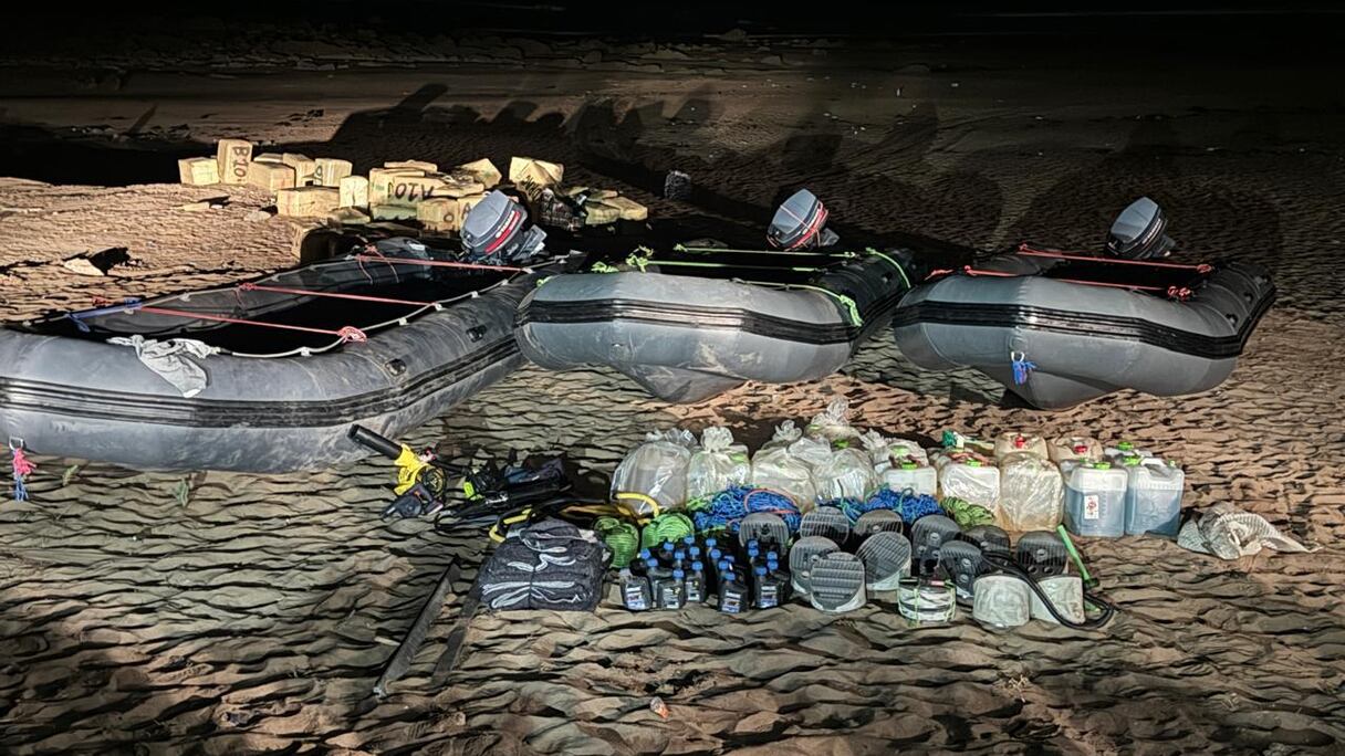 Les embarcations pneumatiques saisies lundi 3 juin à Sidi Rahhal.