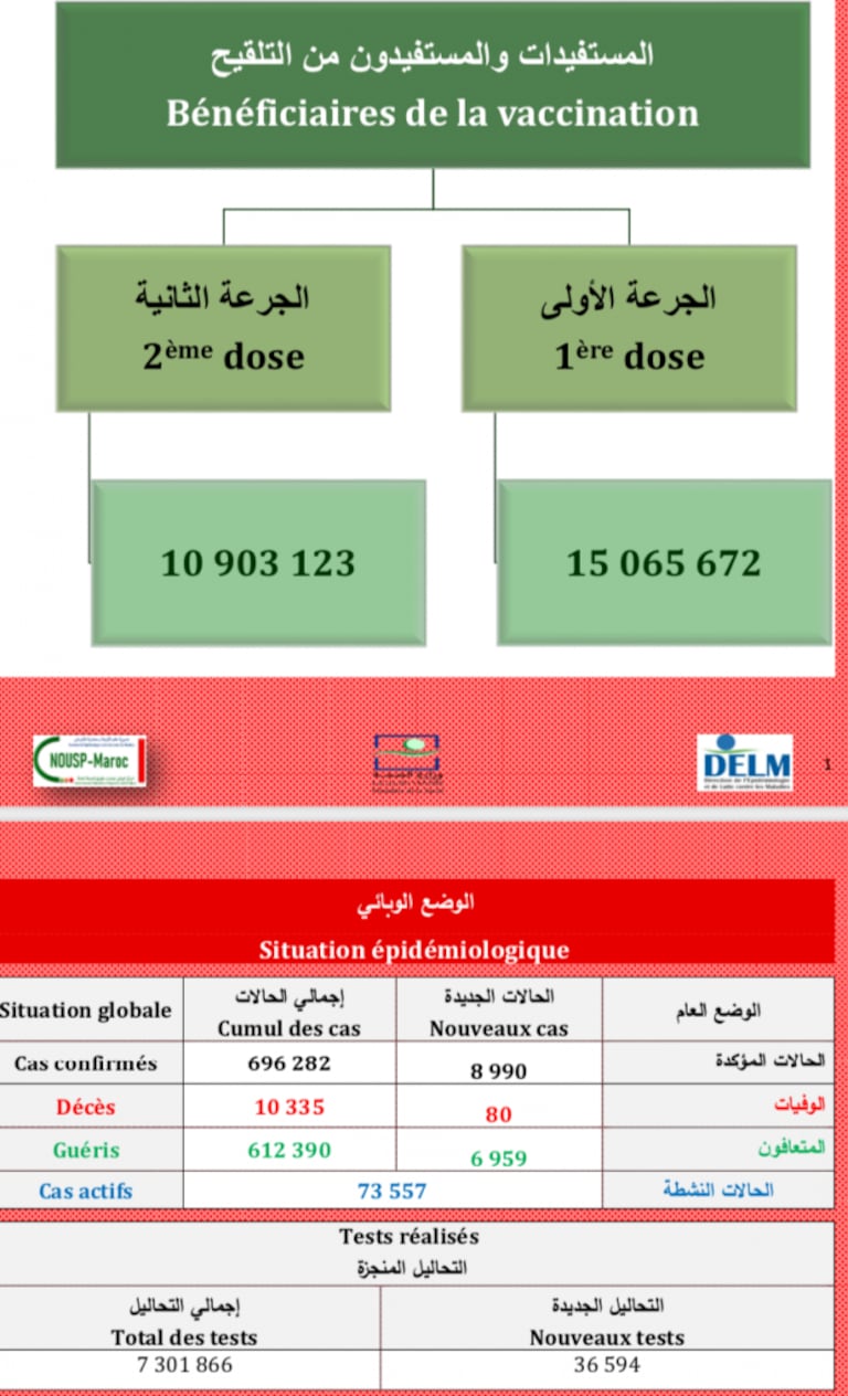 Nouveaux cas de contamination, rémissions, nombre de dépistages effectués, vaccinations, etc. Pour en savoir plus sur l'évolution du coronavirus au Maroc, cliquez sur ce lien: https://covid.le360.ma.