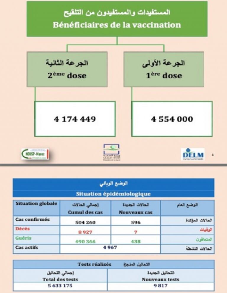 Nouveaux cas de contamination, rémissions, nombre de dépistages effectués, vaccination, etc. Pour en savoir plus sur l'évolution du coronavirus au Maroc, cliquez sur ce lien: https://m.le360.ma/covidmaroc.