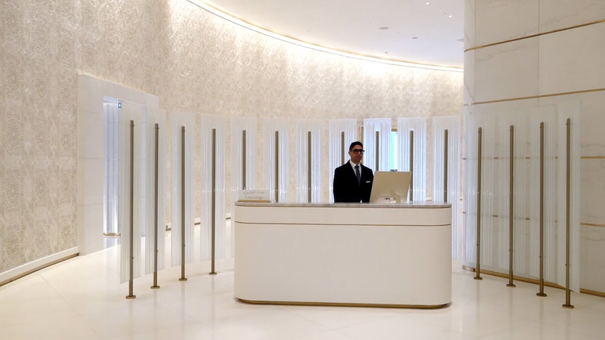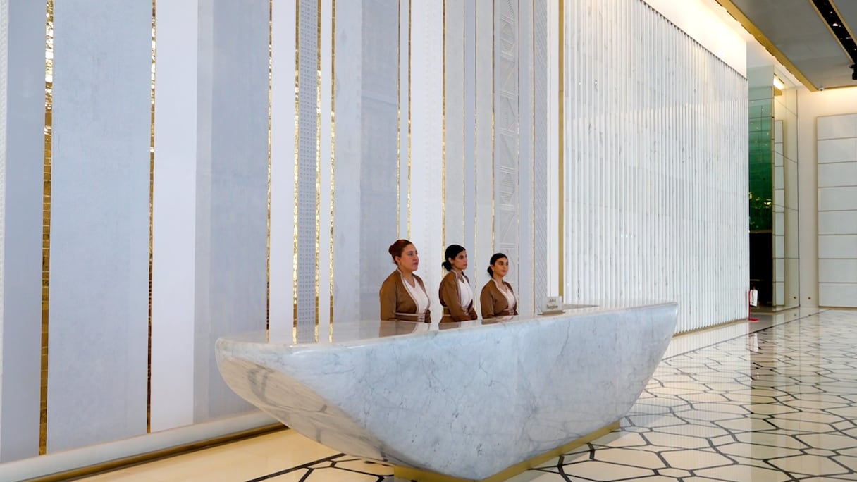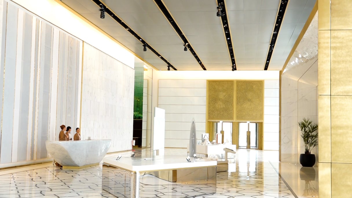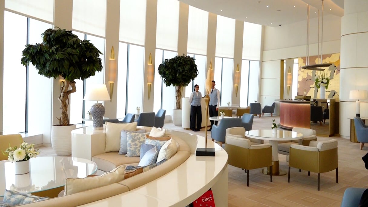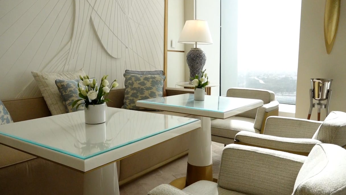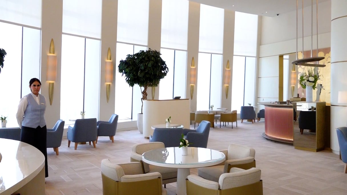 Du 1er au 13e étage, la tour propose des espaces de travail, soit 26 plateaux de bureaux. Du 14e au 28e, comptez 30 appartements. Du 29e au 49e, place à l’hôtel Waldorf Astoria, sans doute la plus prestigieuse marque d’hôtellerie de luxe répertoriée avec (à peine) 35 hôtels dans le monde. À Rabat-Salé, Waldorf Astoria inaugure son premier et unique hôtel en Afrique. Au menu, 55 clés, dont 38 suites, un boardroom de 302 m² (176 personnes) et une Peacock Alley, soit un espace bien select de connexion, perché au 30e étage avec vue panoramique sur 180 degrés. Une signature de la marque. S’y ajoute le restaurant Aldabaran, le restaurant signature du chef emblématique Alain Ducasse. Une piscine couverte et un spa complètent un univers de luxe et de volupté. Sa grande particularité par rapport aux autres Waldorf Astoria: «l’intégration dans tous les espaces de l’hôtel d’éléments de l’artisanat marocain. Damasquinerie, zellige, sculpture sur métal… tous ces artisanats sont présents», explique Guy Bertaud, directeur général du Waldorf Astoria Rabat-Salé. Cela a un prix: à partir de 9.000 dirhams la nuitée.