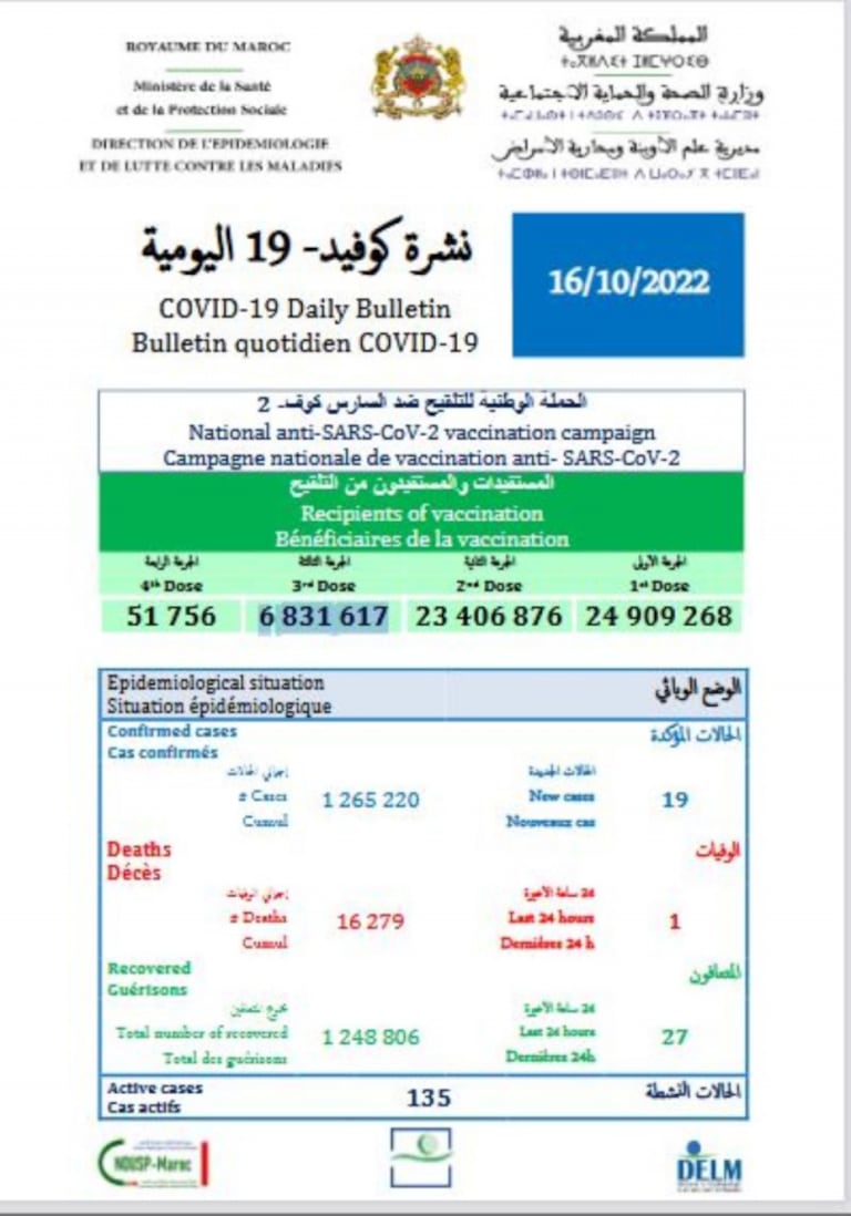 Au Maghreb, l'Algérie ne communique pas le nombre de tests de dépistage, ce qui laisse penser que le nombre de contaminations est bien supérieur aux chiffres officiels. Le dernier bilan arrêté fait état d’aucun nouveau cas de contaminations et d’aucun décès. Le pays totalise 270.730 cas de contamination, dont 6.881 décès et 182.356 guérisons.