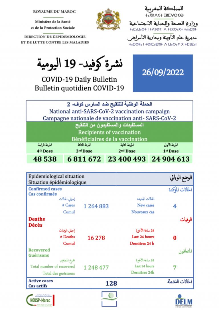 En Tunisie, 182 cas de contamination, 4 décès et 342 guérisons ont été enregistrés, selon le dernier bilan hebdomadaire disponible. Le pays totalise 1.145.345 cas de contamination, dont 29.246 décès et 1.132.072 guérisons depuis mars 2020.