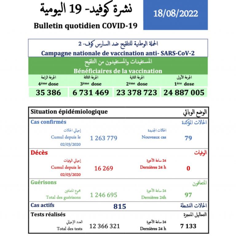 Lire aussi : Covid-19 au Maroc: amélioration continue de tous les indicateurs épidémiologiques