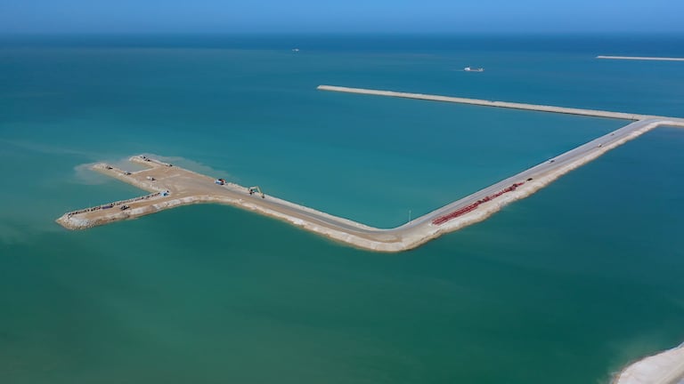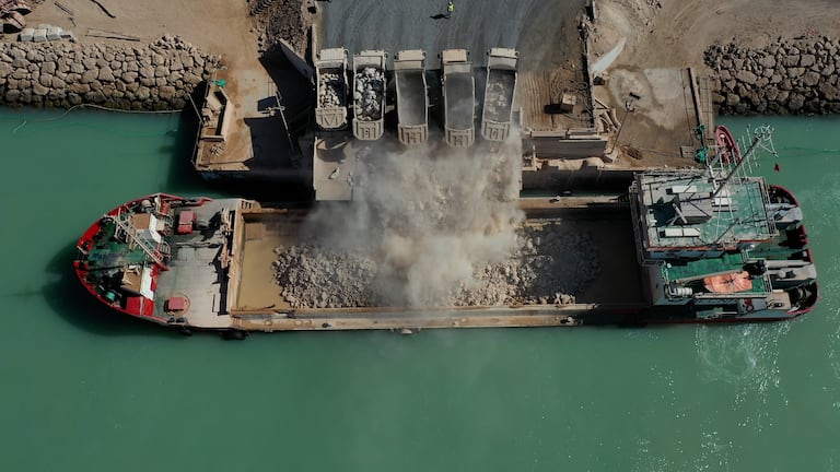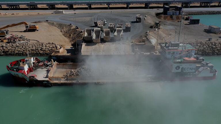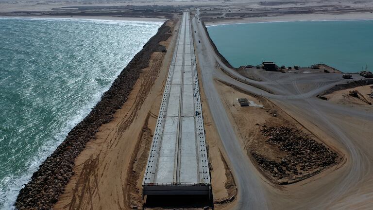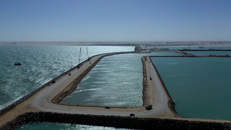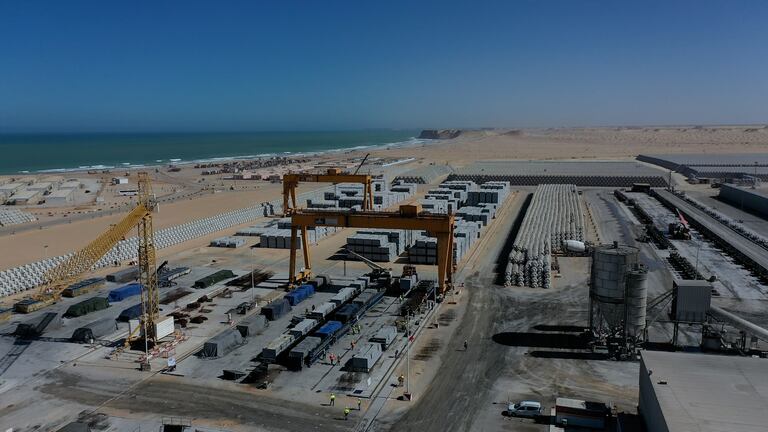 Les travaux du port Dakhla Atlantique ont atteint un état d'avancement de 53% (S.Bouaamoud/Le360).