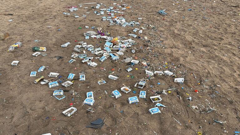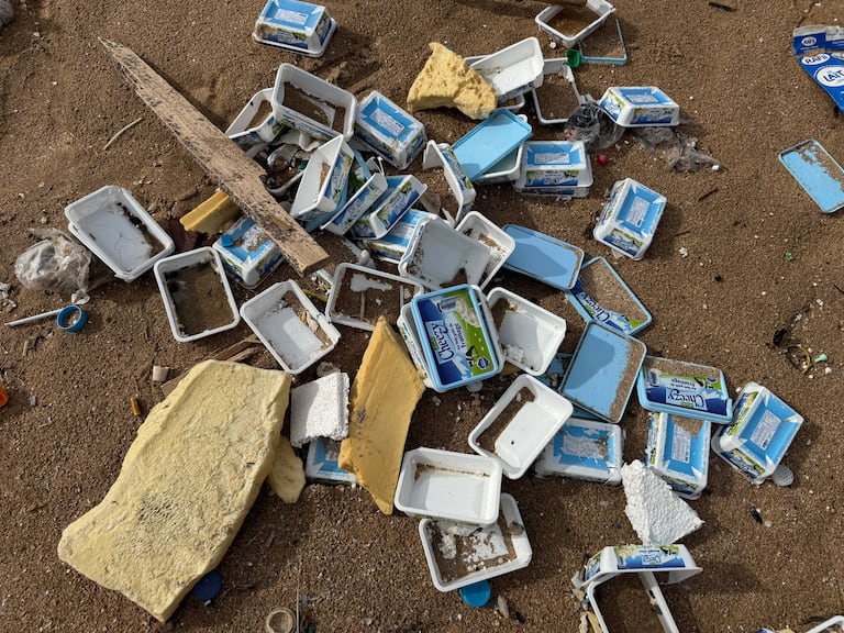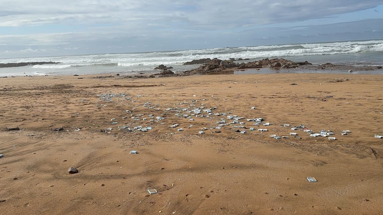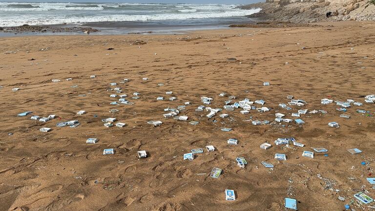 Déchets des conteneurs du navire libérien Ionikos sur la plage de Aïn Diab à Casablanca (A.Gadrouz/Le360).