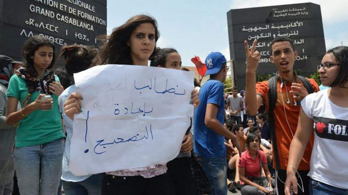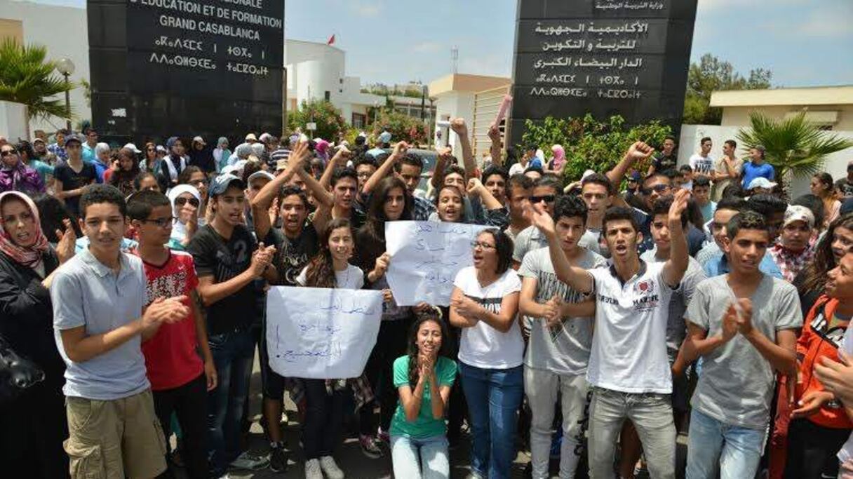 Les élèves de la première année du Baccalauréat ont observé, ce vendredi 10 juillet, un sit-in devant le siège de l’académie régionale de l’Education de la Formation du Grand Casablanca pour demander une re-correction des copies de l’examen régional à cause d’«erreurs dans les notes attribuées à certains élèves».