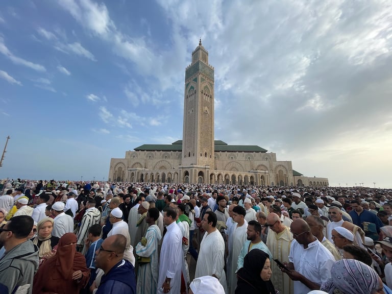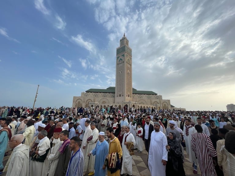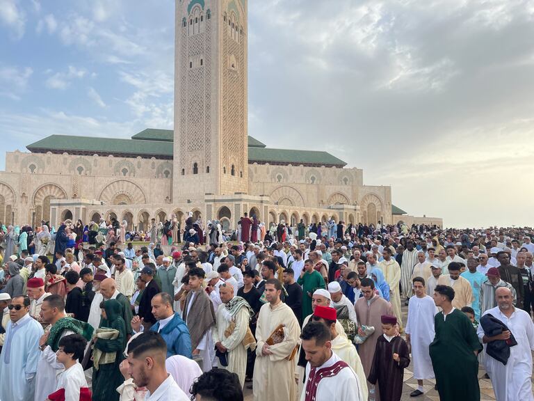 À Casablanca, les fidèles se sont rassemblés, le 7 juin 2025, au mossalla de la Mosquée Hassan II, pour accomplir la prière de Aïd Al-Adha 1446. (A.Et-tahiry/Le360)